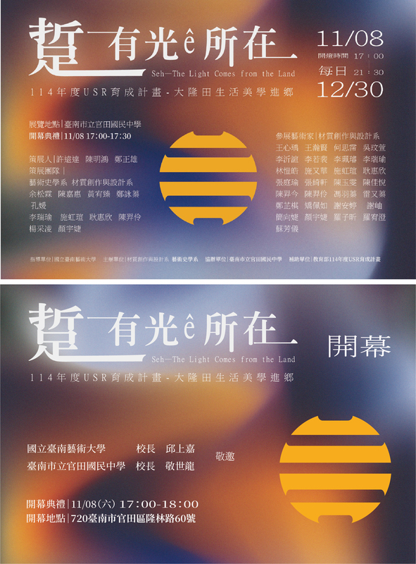 本校藝術史學系及材質創作與設計系聯合舉辦「踅,有光ê所在」展覽